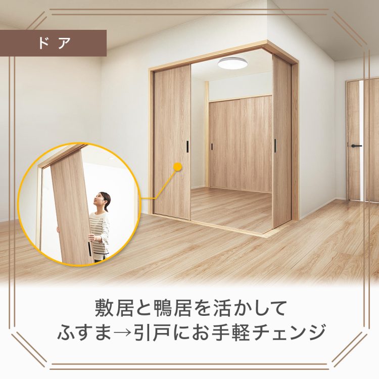 襖を洋風ドアに替えるなら、開口部の解体不要で施工簡単な引戸が最適です。