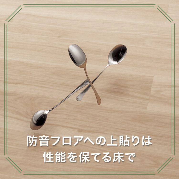 現在のお住まいが防音フローリングの場合、防音非対応の床材を重ねると、性能が低下することも。